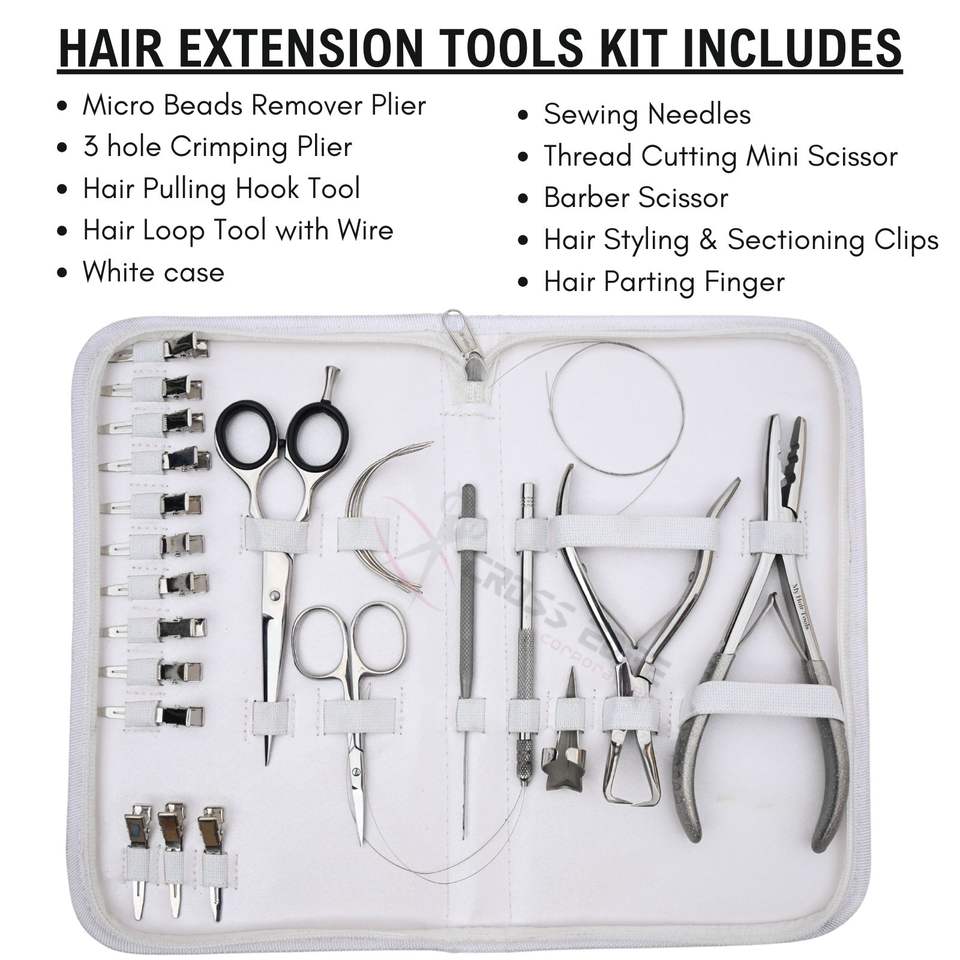 Kit d'outils pour extensions de cheveux à fixation forte avec acier inoxydable