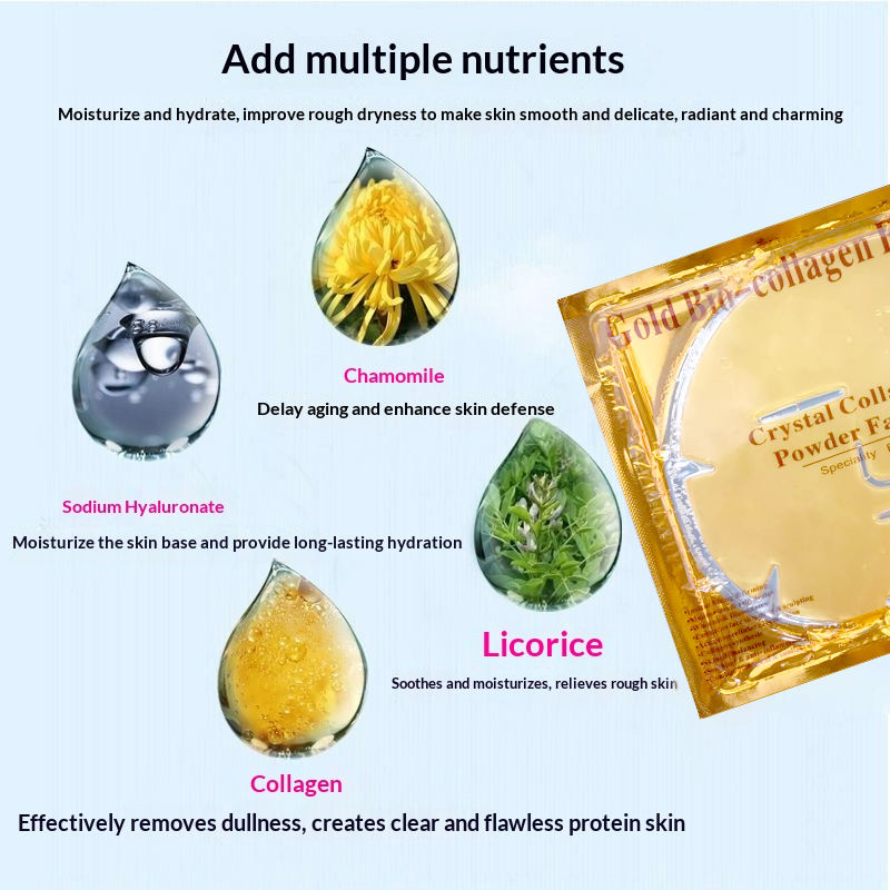 Masques faciaux en feuille d'hydrogel premium pour le soin de la peau et la beauté, hydratants et anti-âge, masque facial doré