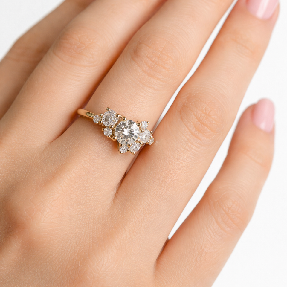 Design: Bague avec diamants en grappe florale