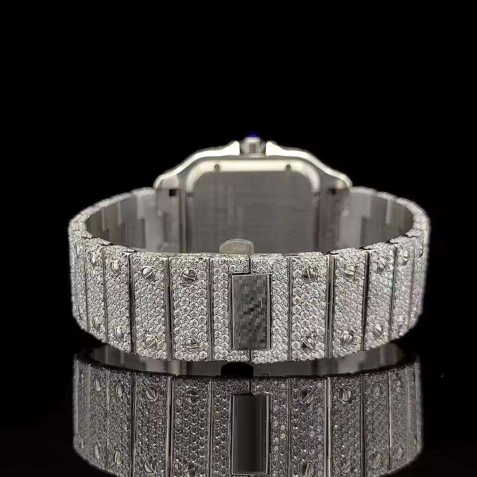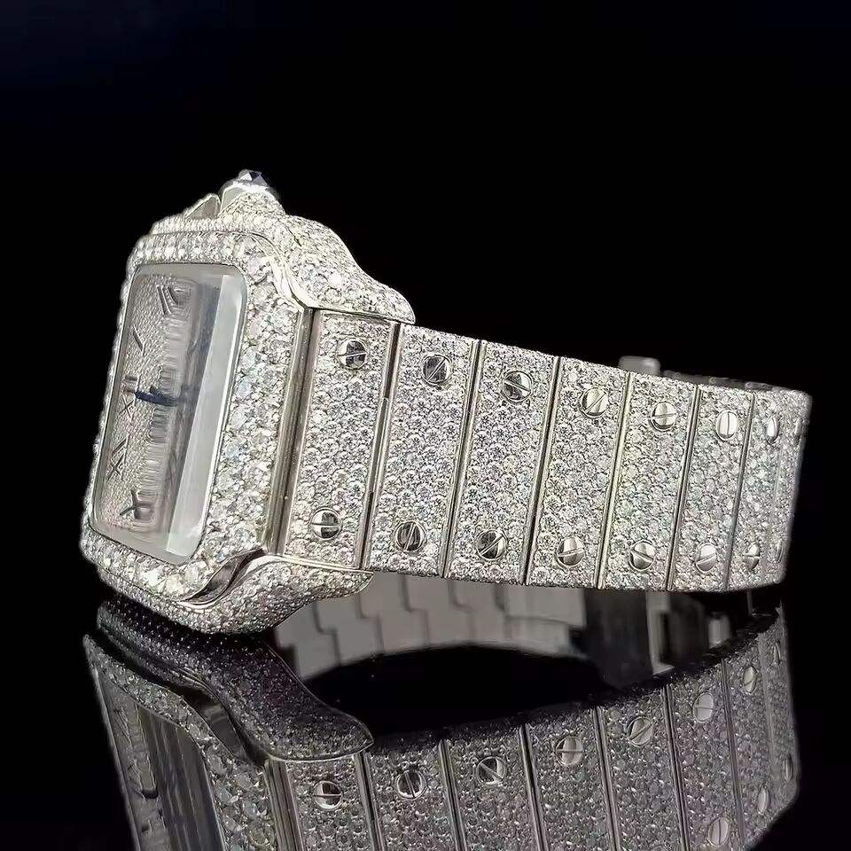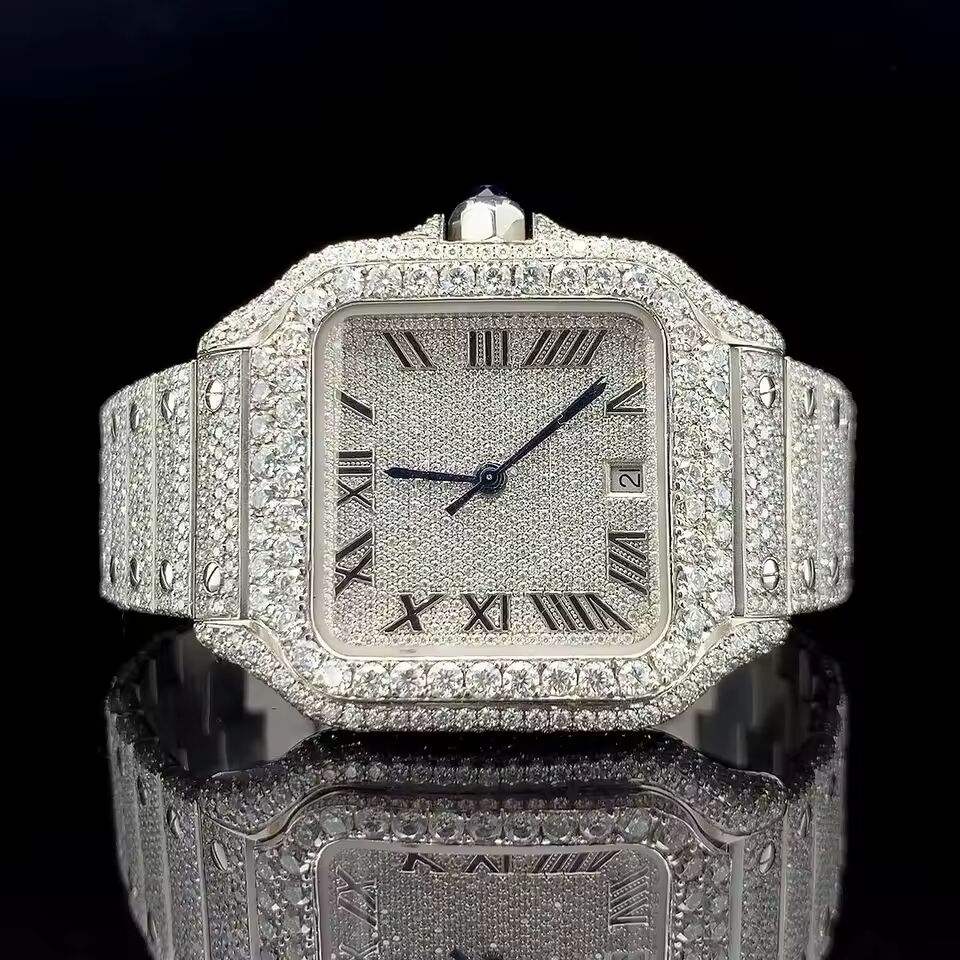 Premium SEIKO Quartz Movement Round Dial Diamond Watch for Men Full Pave CZ Hip Hop Luxury Stainless Steel Roman Numeral Band
