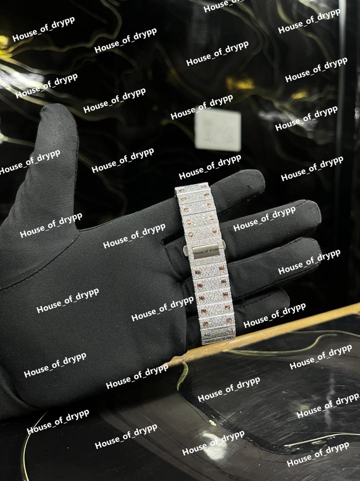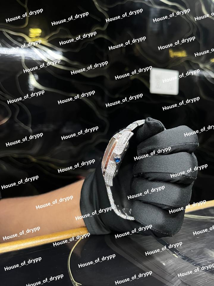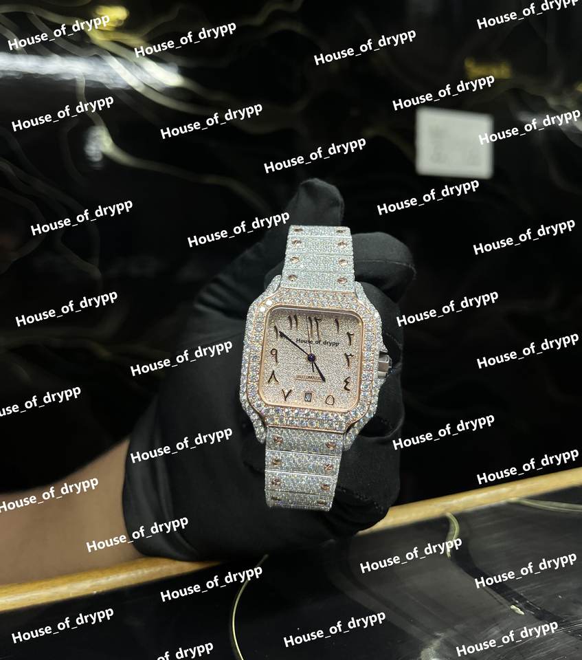 Montre de luxe en acier inoxydable avec cadran carré automatique sertie de diamants Moissanite, pour homme et femme