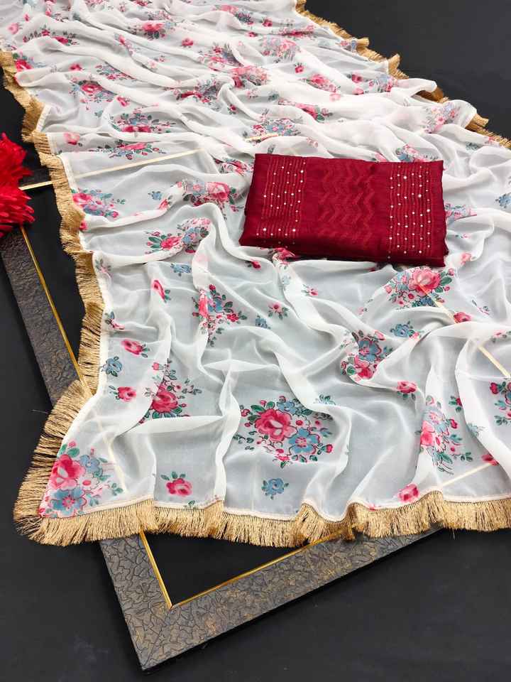 Nom du produit:Vente chaude Designer imprimé Saree avec chemisier de broderie pour le parti