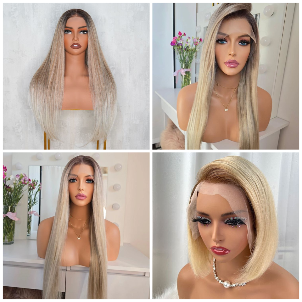 Perruque à trame unique Remy cheveux humains indiens de qualité supérieure couleur blond platine dentelle Full HD aspect naturel de haute qualité