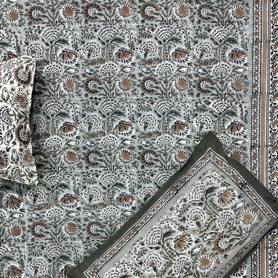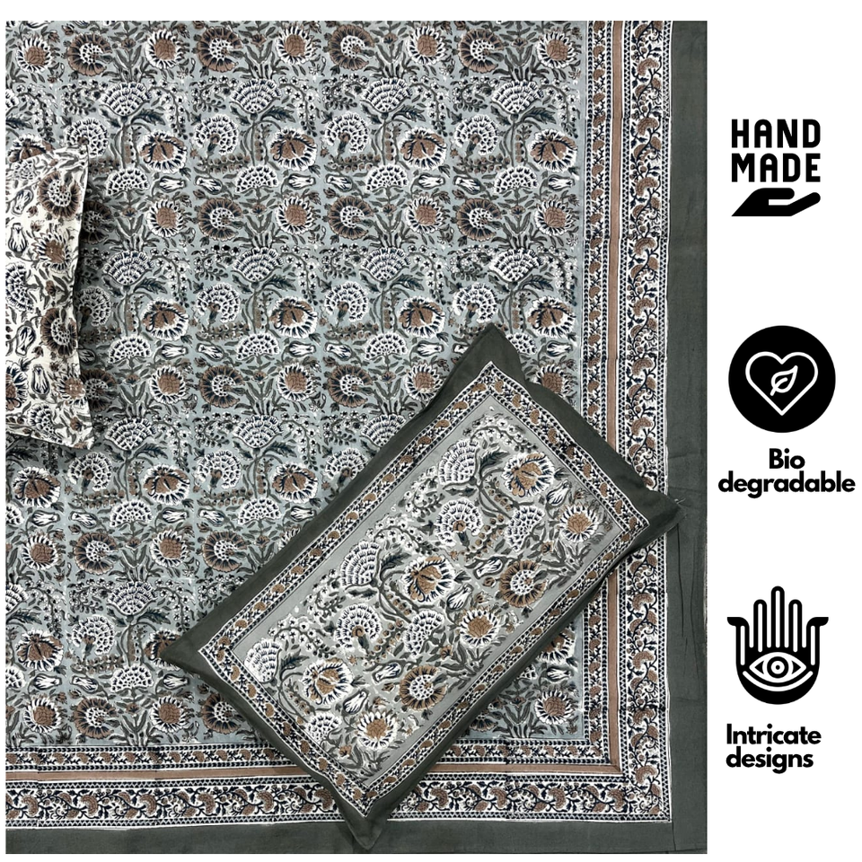 Drap de lit King Size en pur coton, imprimé à la main de Jaipur, teinture non toxique, respirant, motif floral, 108x90 pouces, idéal pour hôpital