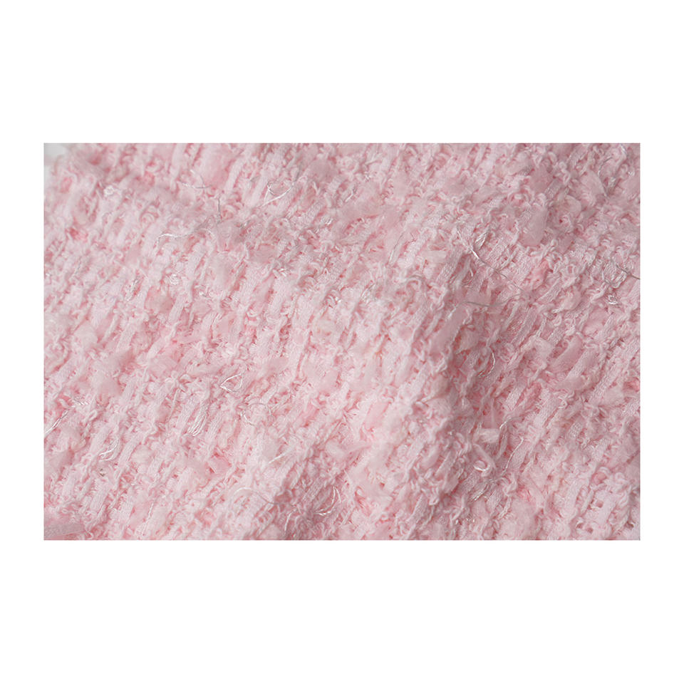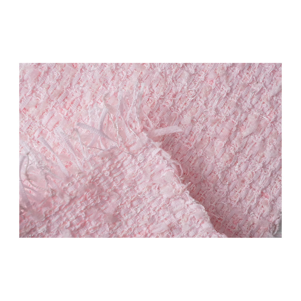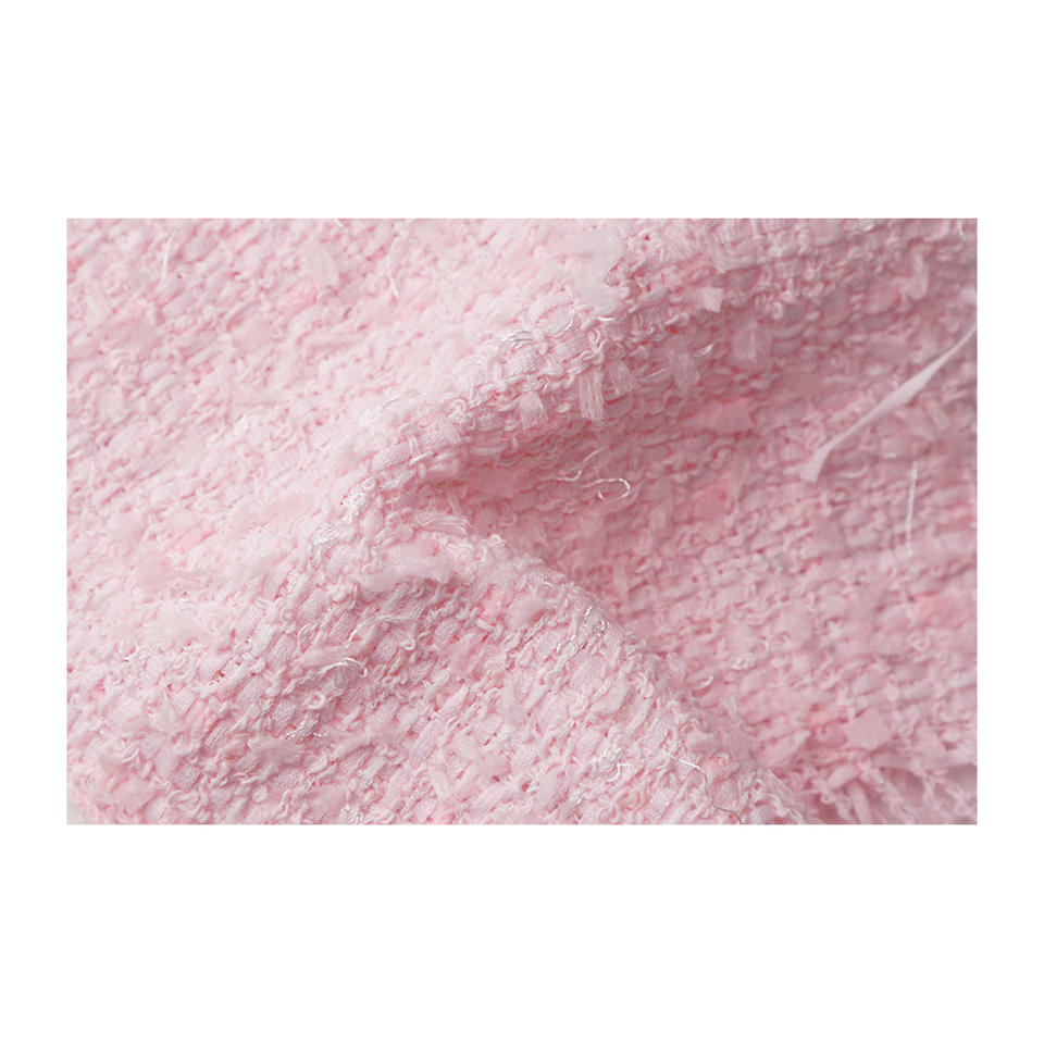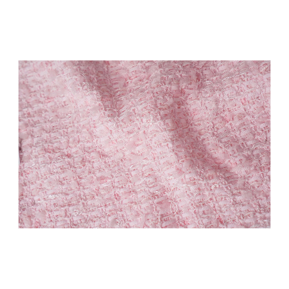 Tissu en tweed fantaisie coréen de qualité supérieure, maille papillon rose transparente, texture duveteuse, tissu textile tissé sur mesure OEM & ODM