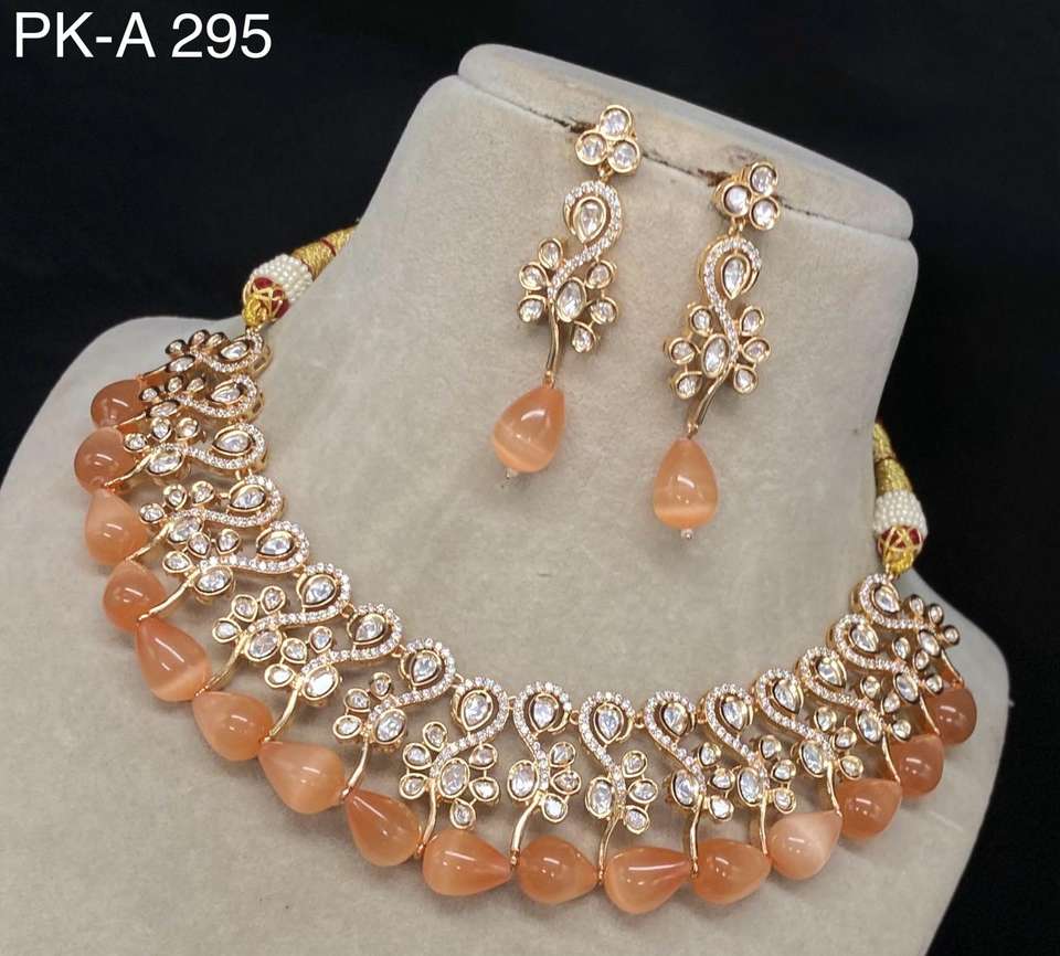 Premium Kundan Brass Necklace & Earrings Set with American Diamonds Elegant Bridal Jewelry for Weddings & Parties