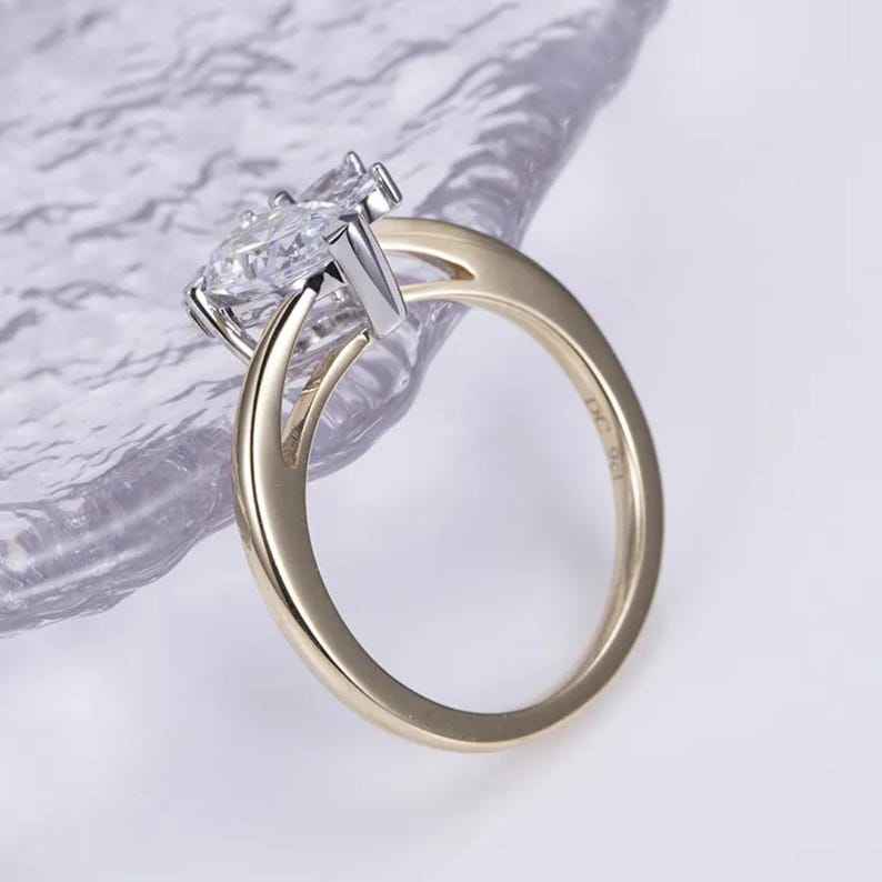 Bague en or jaune 14 carats avec diamant de laboratoire de qualité supérieure 1,02 carat taille poire et grappe de diamants pour femme, bijoux fins modernes et romantiques pour petite amie