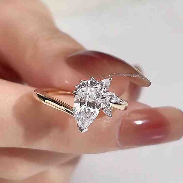 Bague avec grappe de diamants taille poire