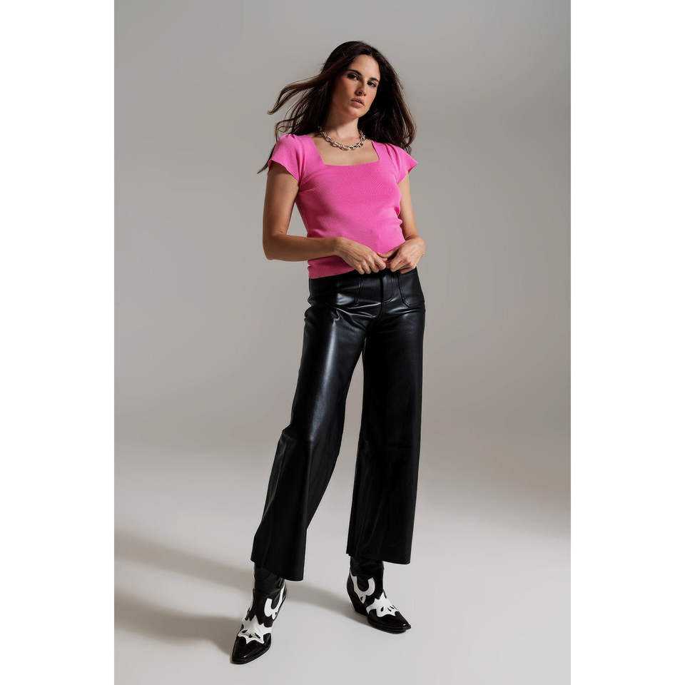Pull rose haut de gamme pour femme, col carré, manches bouffantes, respirant, tendance, avec logo frontal et volants, taille XS, pour l'automne/hiver