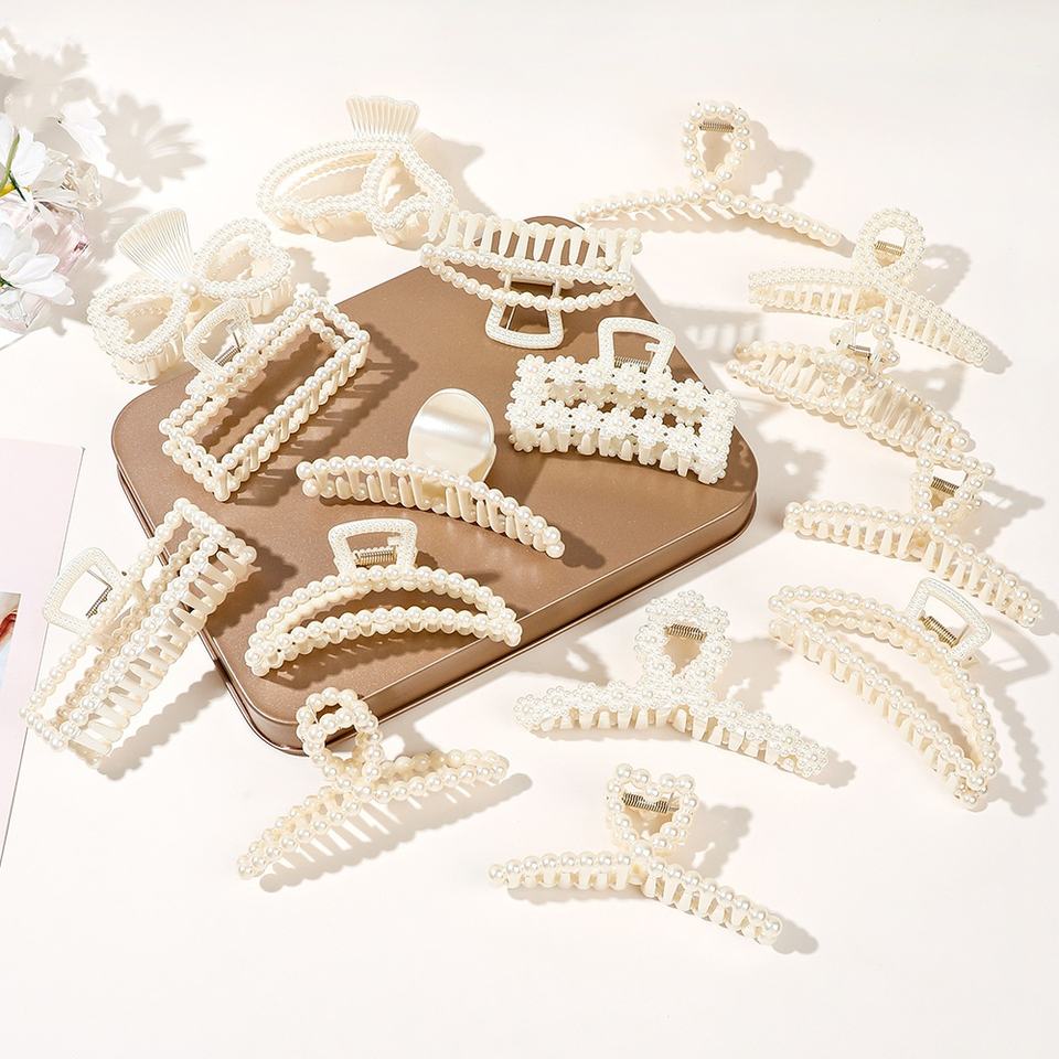Pinces à cheveux en perles de grande taille de qualité supérieure avec une prise ferme, conçues pour les chignons et les queues de cheval à l'arrière de la tête, élégantes pour tous les jours pour les femmes