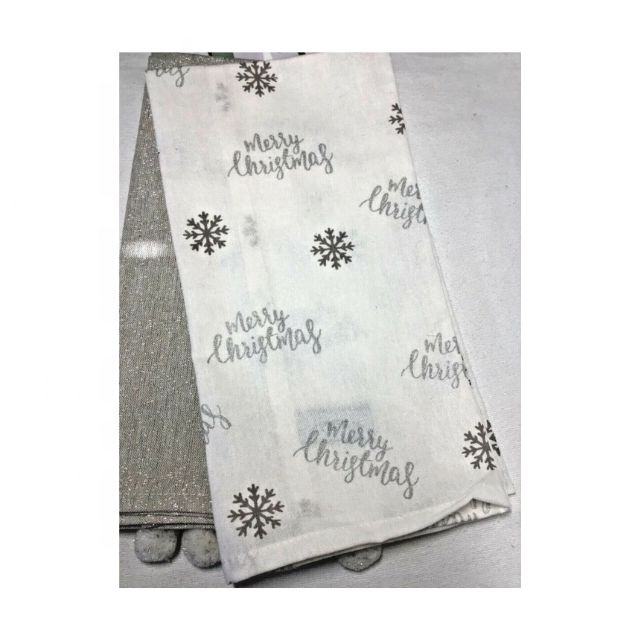Grands flocons de neige de qualité supérieure brodés joyeux Noël 100% coton biologique très absorbant Golf blanc torchons de cuisine d'Inde