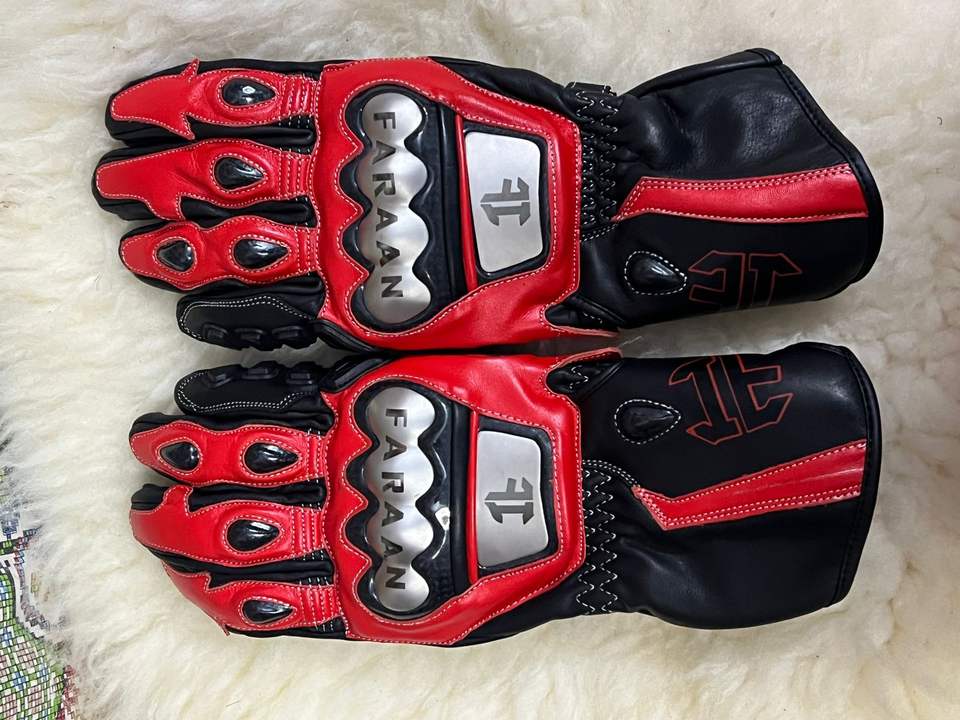 Gants de moto en cuir premium, qualité supérieure, rouge et noir, protection des phalanges en carbone, manchette longue, pour la course sur circuit