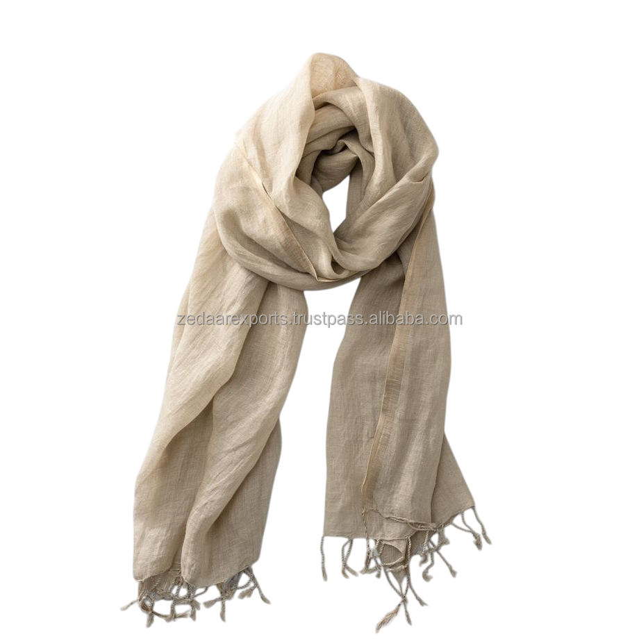 Lin décontracté pour femmes de qualité supérieure Dupatta personnalisé OEM ODM avec un faible quantité minimale de commande disponible en motifs solides et rayés