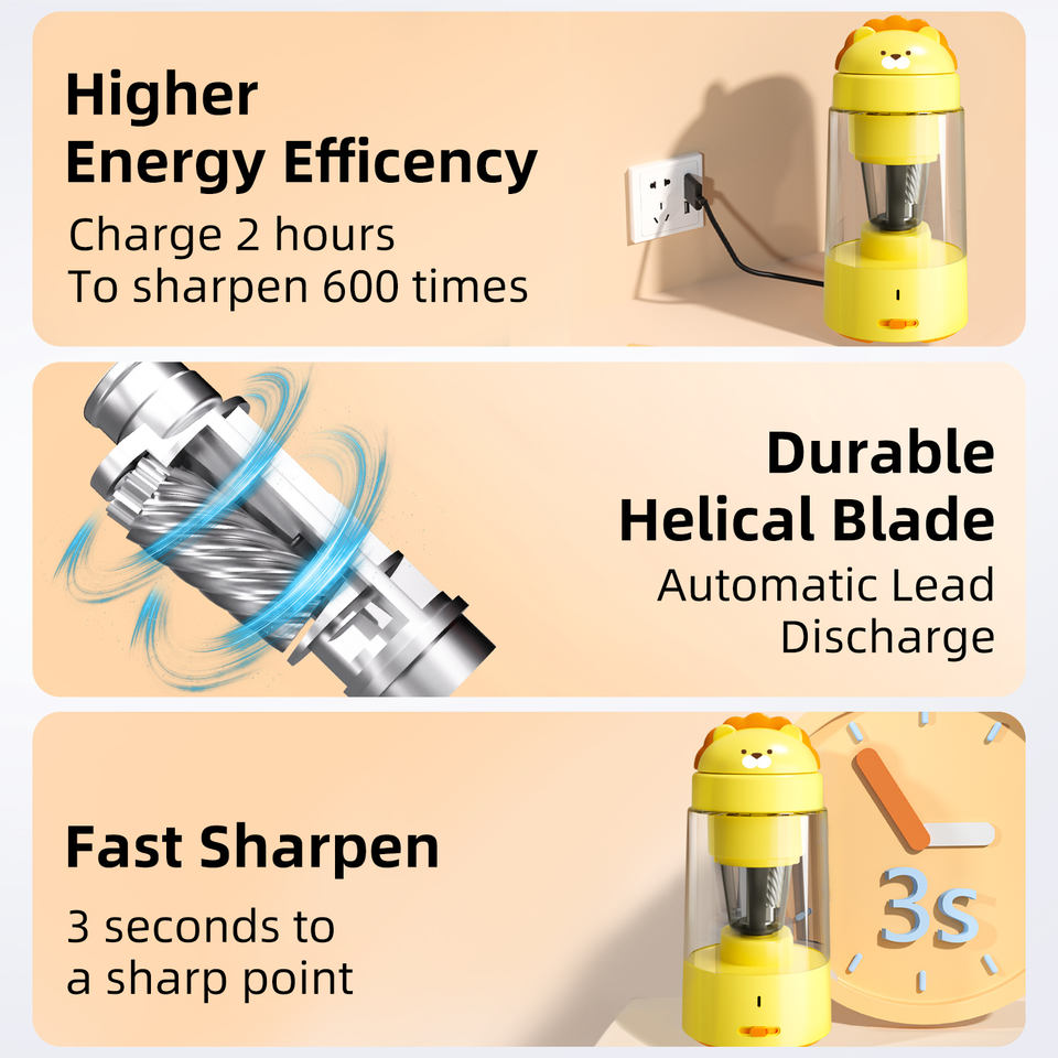 Taille-crayon électrique automatique de qualité supérieure en forme de lion avec batterie au lithium rechargeable certifié CE pour usage au bureau