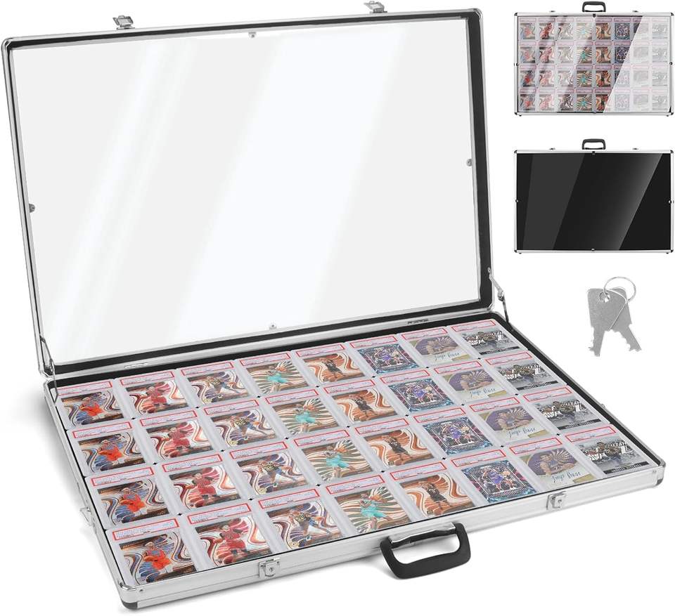 Vitrine de présentation de cartes à collectionner en aluminium verrouillable de qualité supérieure, portable, pour cartes de sport classées