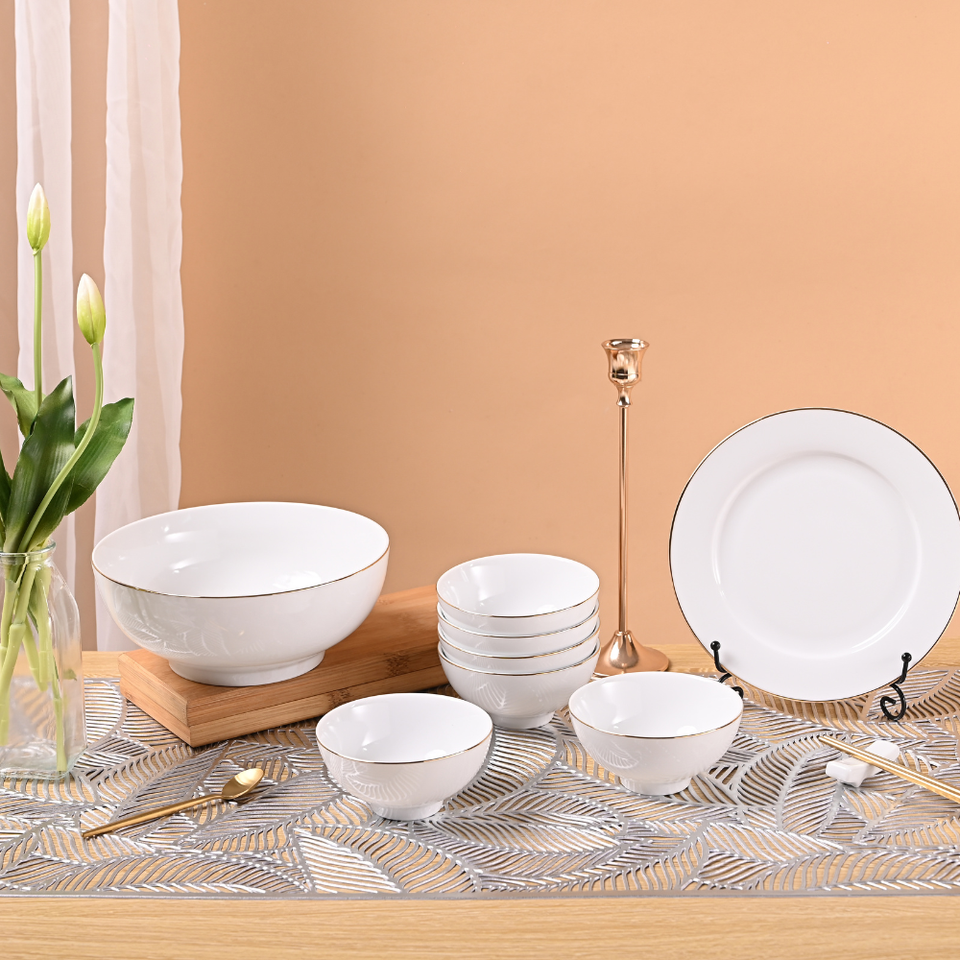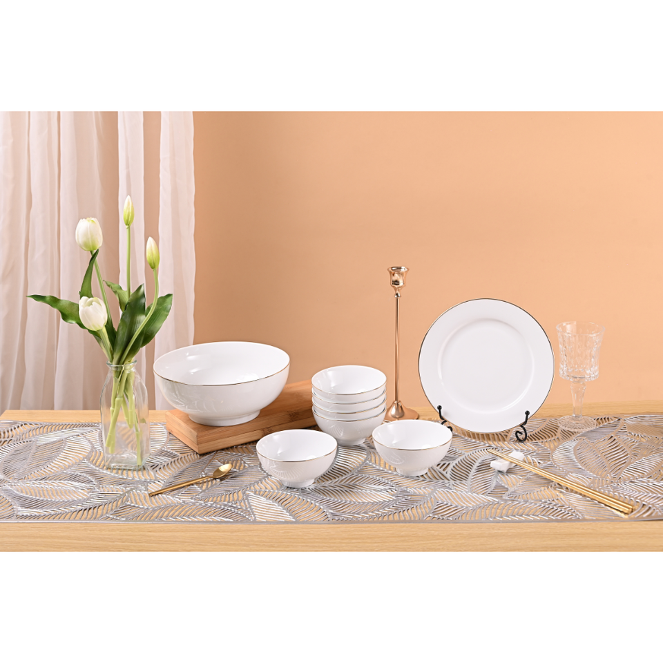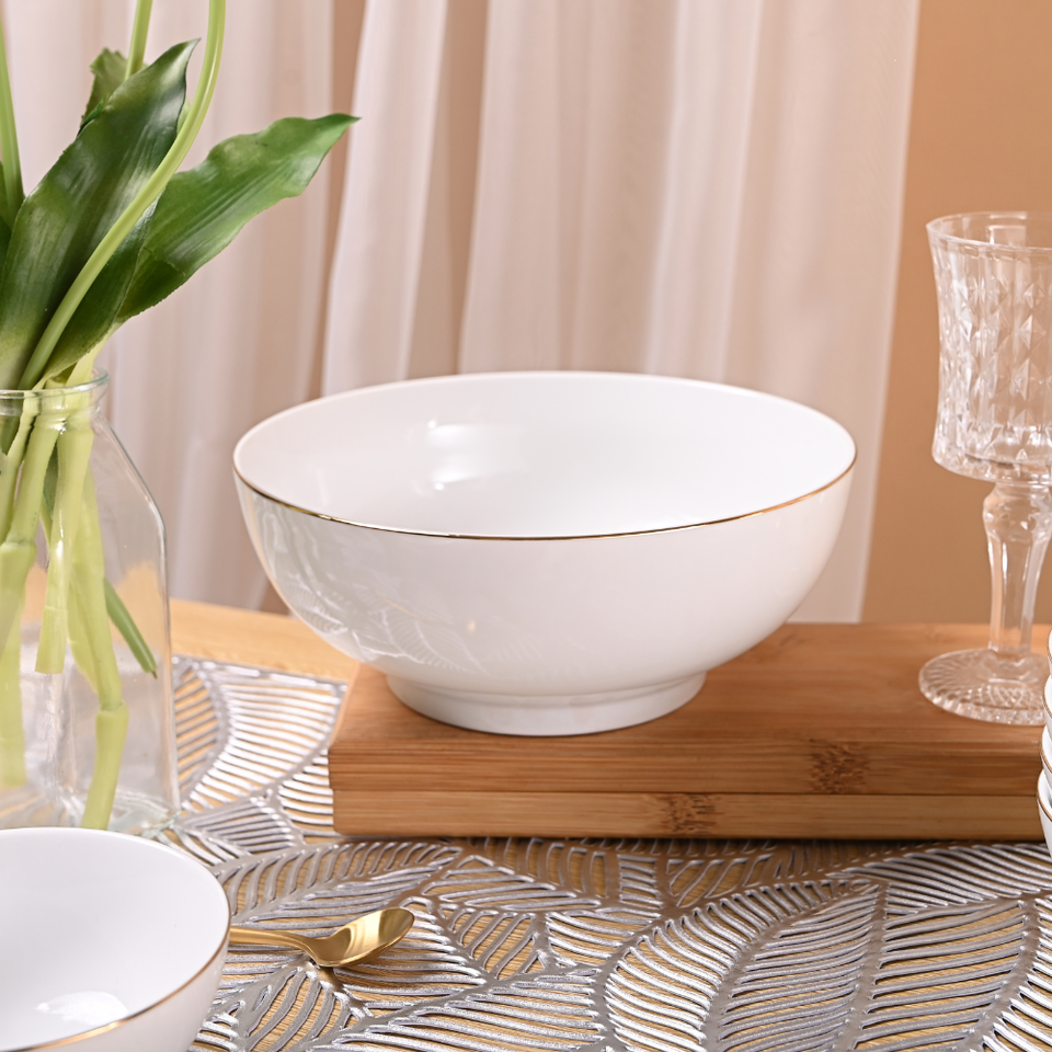 Bol à riz en porcelaine de qualité supérieure Long Phuong avec bord doré-Élégamment conçu pour rehausser votre expérience culinaire.