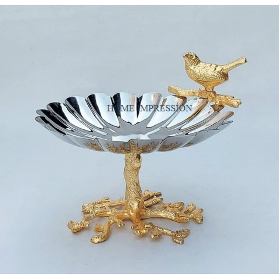 Premium Look Fantaisie Bol Décoratif En Acier Inoxydable Matériel Logo Personnalisé En Aluminium Feuille Conception Poignée Plateau De Service Bol