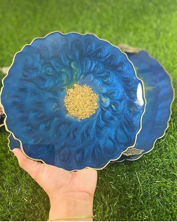 Plateau en résine fait main au design élégant, personnalisable pour la décoration intérieure moderne et les cadeaux de mariage