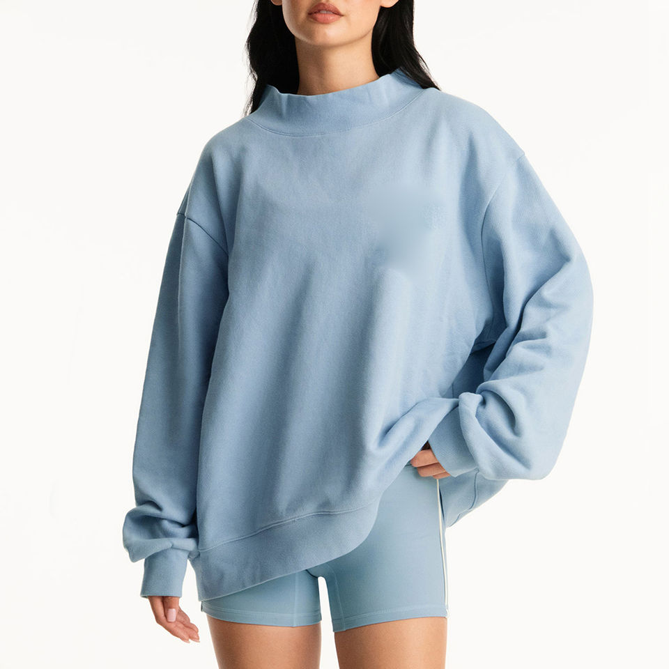 Sweat-shirt à col montant de qualité supérieure, luxueux, de haute qualité, streetwear, ample, en coton épais, surdimensionné, à col montant