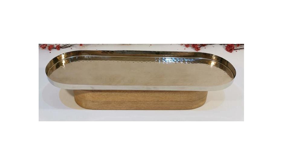 Premium Luxury Design Dates Serving Platter Bowl Wooden Top Aluminium Base Elegant Serving Fruits Dates Hotel Parties Table
