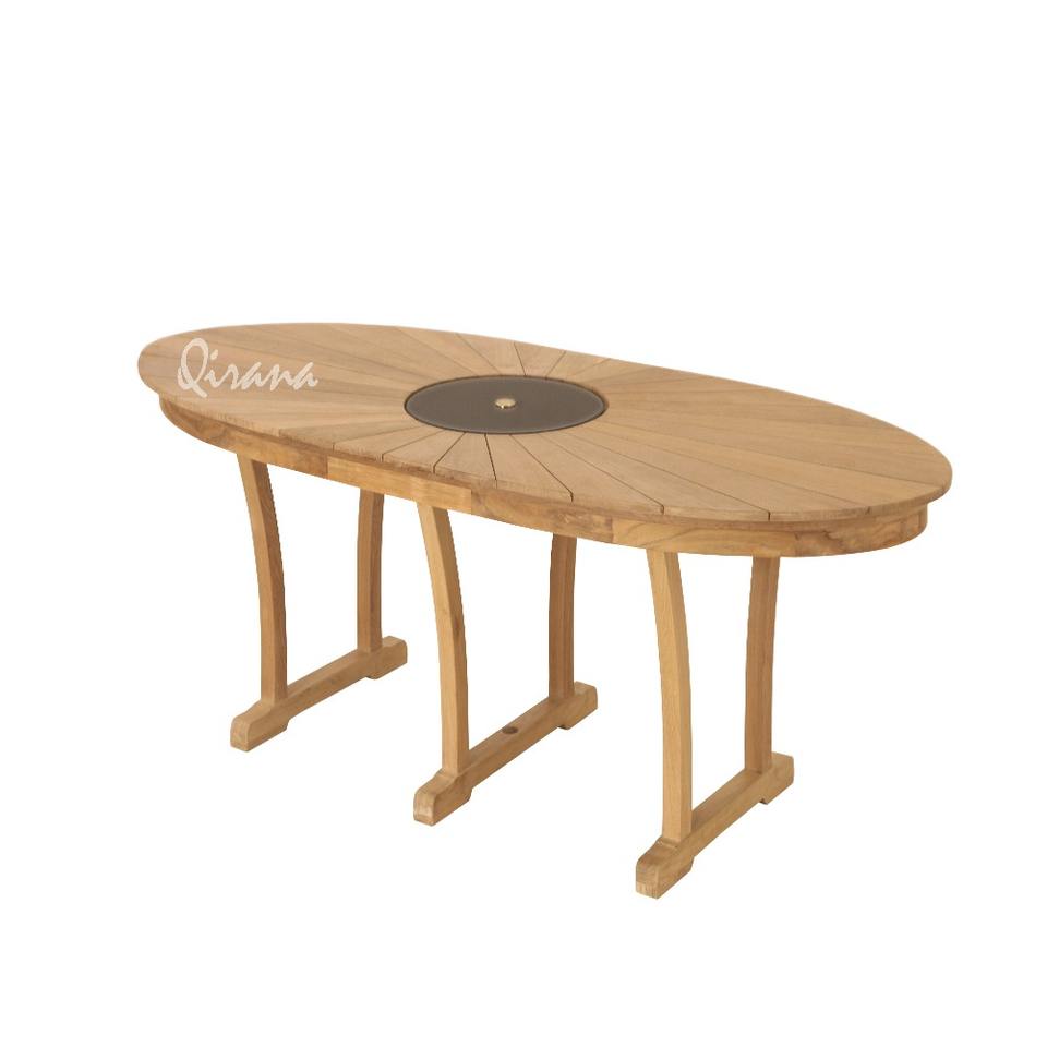 Table à manger moderne de luxe pliable en teck modèle Ellipse Lazy Susan pour cour extérieure entrepôt hôtel restaurant café