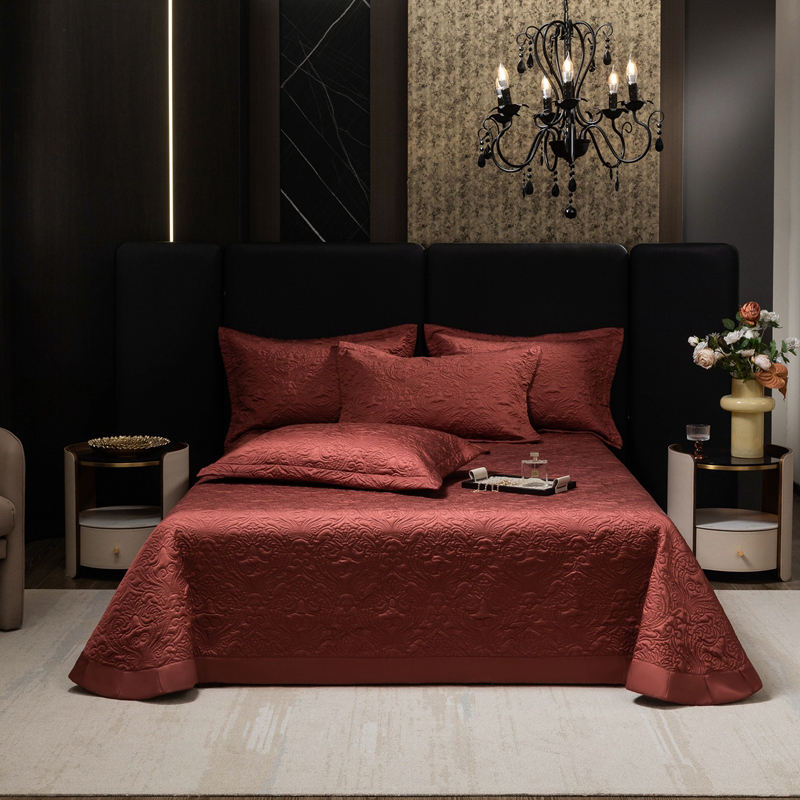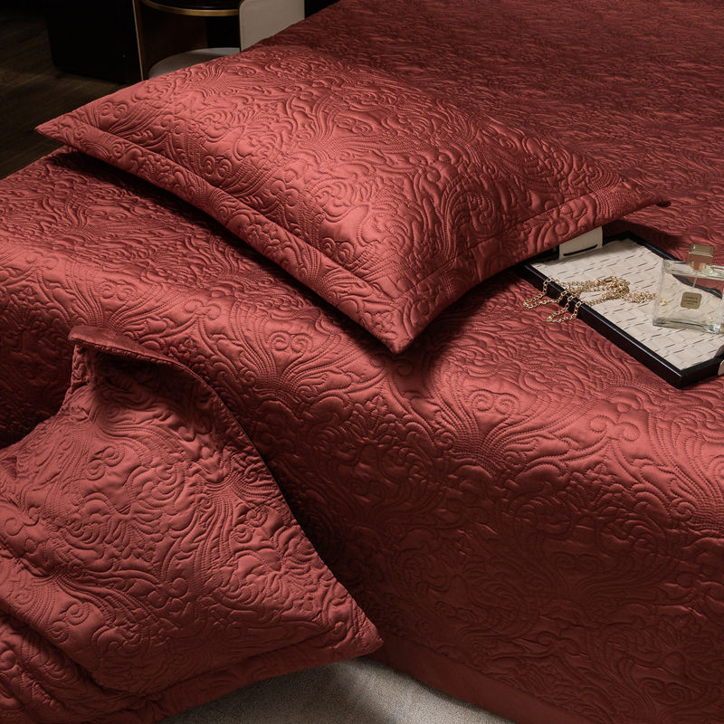 Premium Lyocell soie comme doux brillant brillant refroidissement couvre-lit pour l'été couleur unie vin rouge taies d'oreiller matelassées