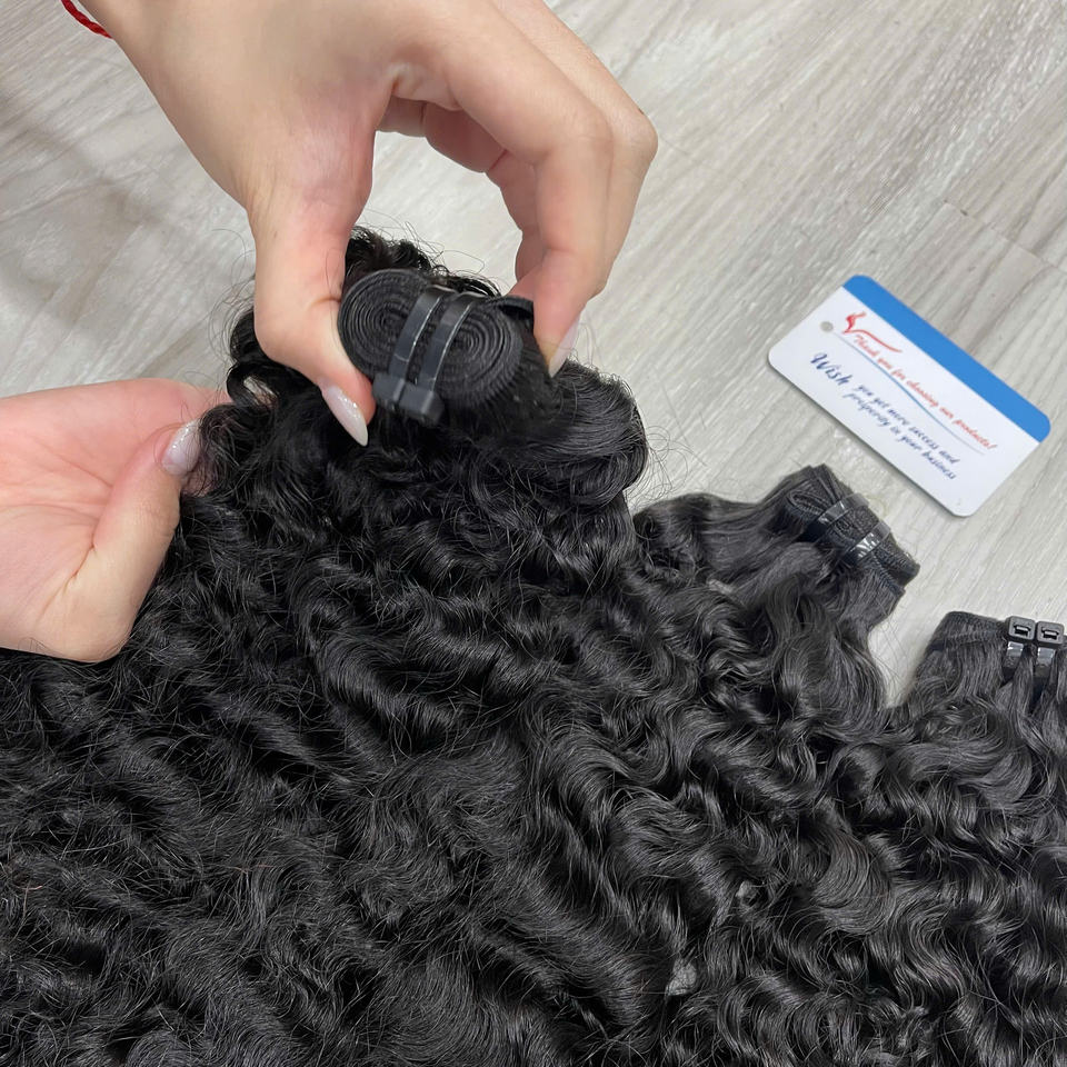 Extensions de cheveux bouclés birmans de qualité supérieure, tissées à la machine, couleur naturelle, provenant d'un seul donneur, 100% cheveux humains, prêtes à être expédiées.