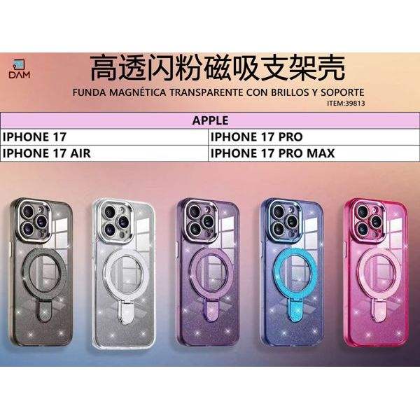 Étui transparent magnétique premium en TPU+PC avec paillettes, support et poignée pour téléphone pour 17