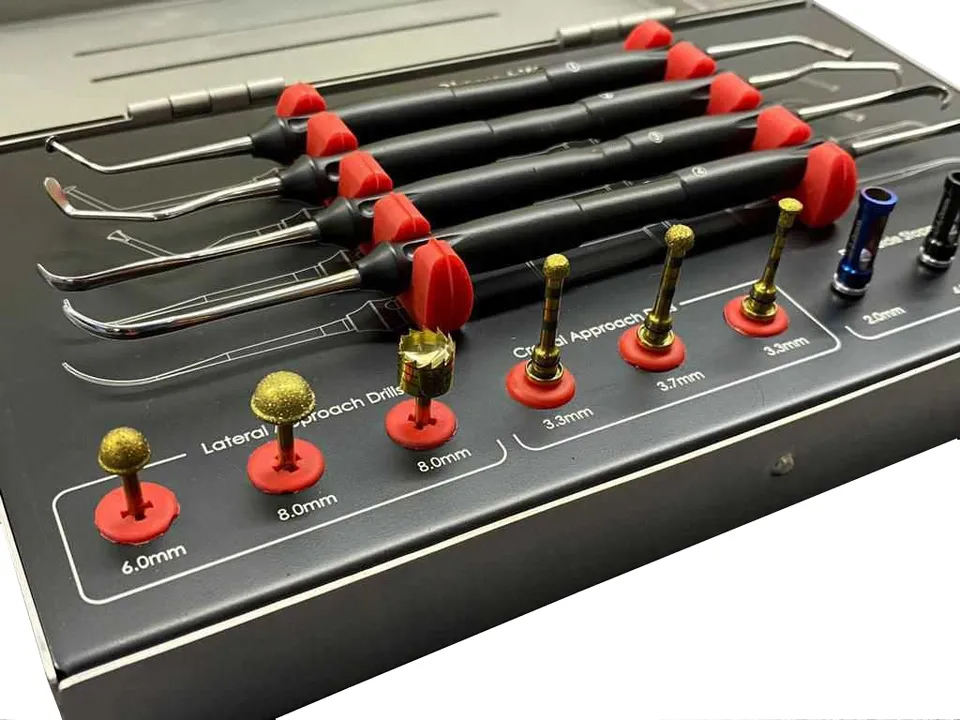 Kit de lifting sinusal manuel premium pour implants dentaires, approche latérale crâniocéphalique, avec butées et fraises diamantées en acier inoxydable de haute qualité