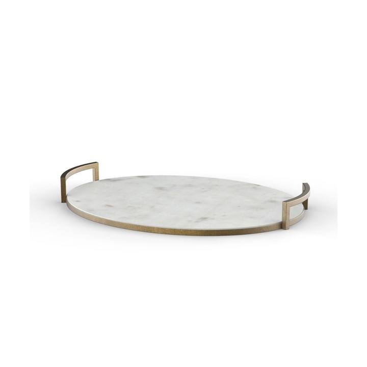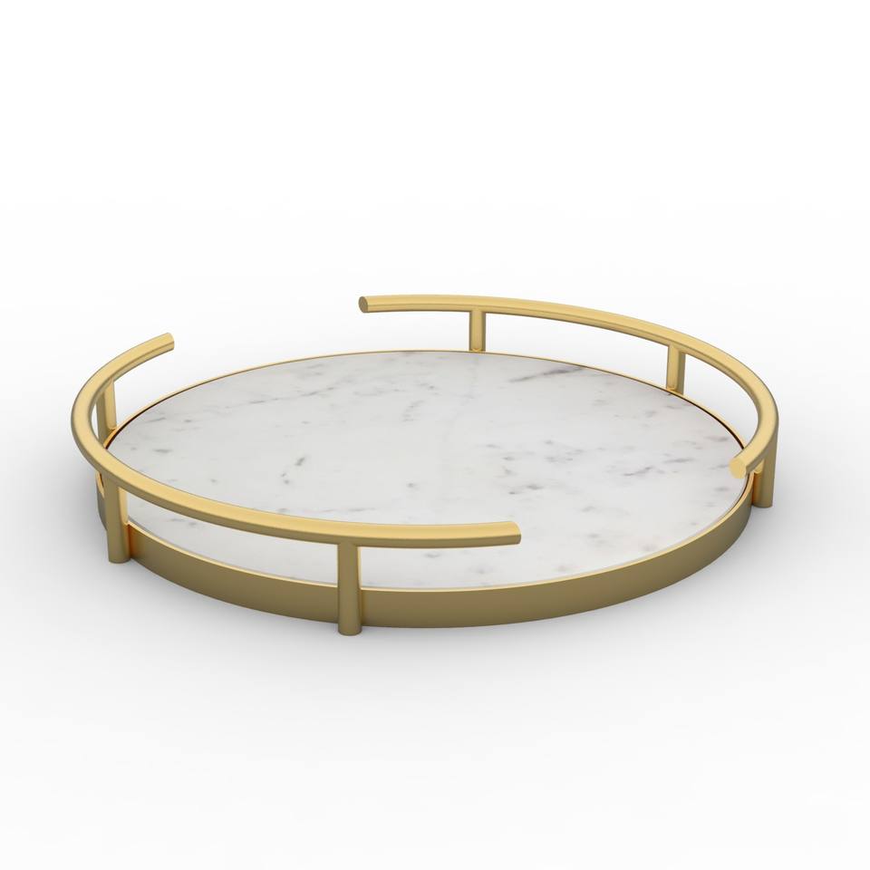 Plateau de service rond en marbre de qualité supérieure avec poignées en métal poli en laiton Organisateur de bureau et pièce décorative pour bureau ou décoration intérieure