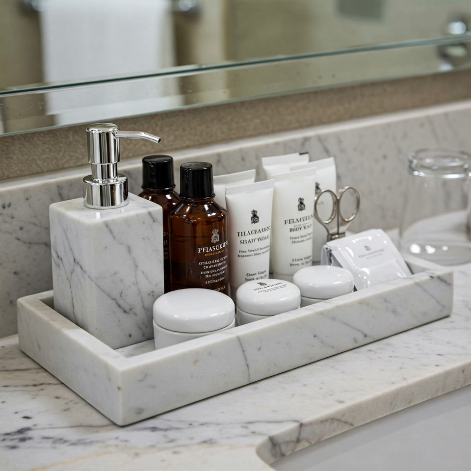 Distributeur de savon de style marbre de qualité supérieure Design moderne personnalisable Ensembles de salle de bain à prix d'usine en approvisionnement en gros