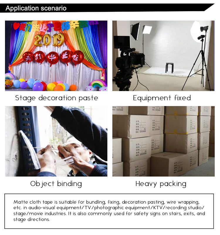 Ruban adhésif professionnel mat de qualité supérieure de 3 pouces, personnalisé, en caoutchouc, blanc, pour scène, type Gaff/Gaffer, noir
