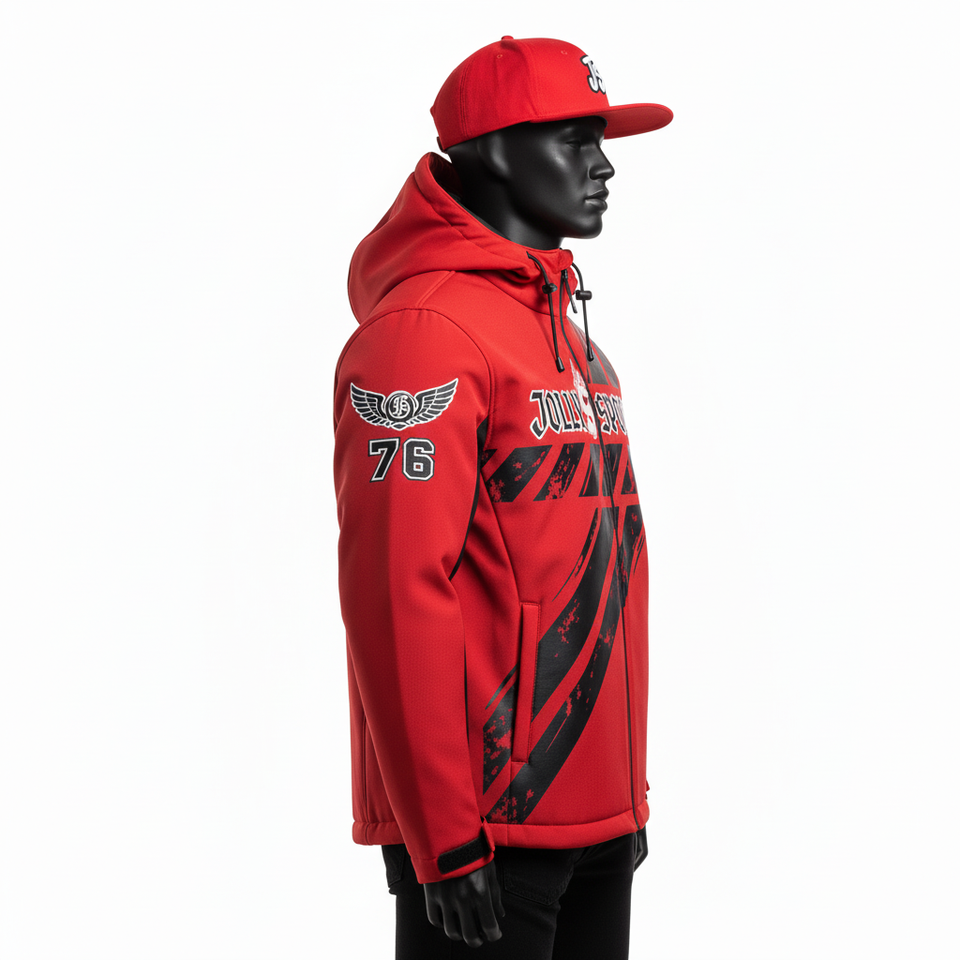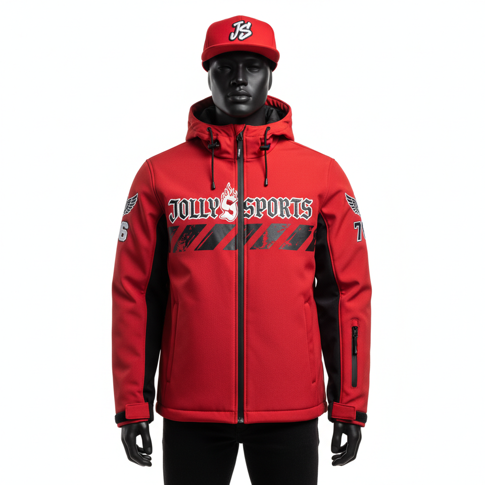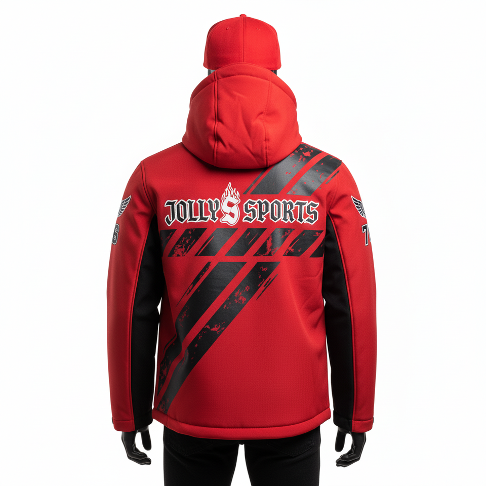 Veste Softshell Premium pour Hommes 310 GSM Tissu Extensible Rouge Noir Design à Panneaux Logo Personnalisé Transfert Thermique Veste Softshell pour Hommes