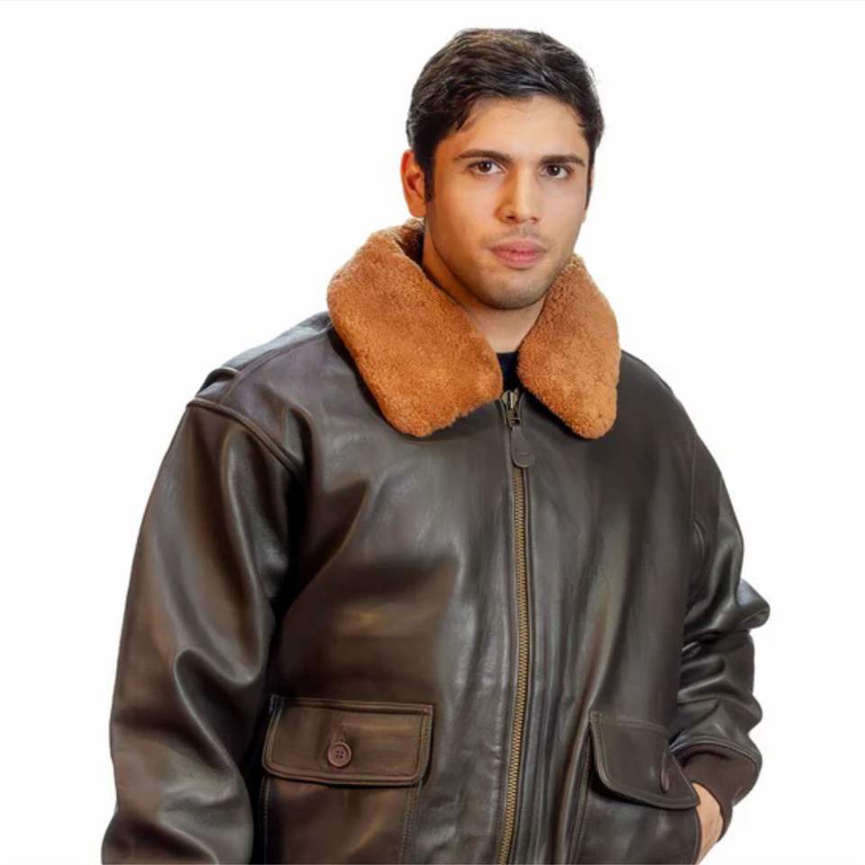 Veste de vol en cuir pour homme de qualité supérieure avec col en fourrure amovible et style aviateur classique-idéale pour le froid et l'extérieur