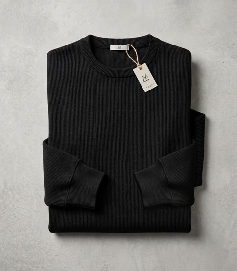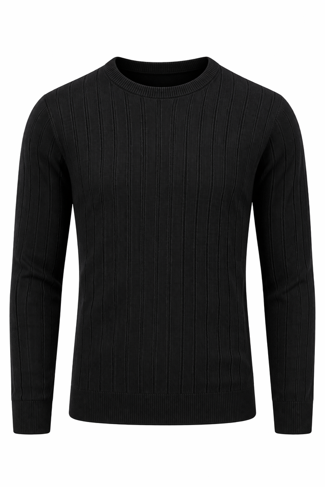 T-shirt côtelé à manches longues pour homme de qualité supérieure | T-shirt en tricot à rayures verticales coupe ajustée | T-shirt décontracté à col rond en mélange de coton, coupe ajustée
