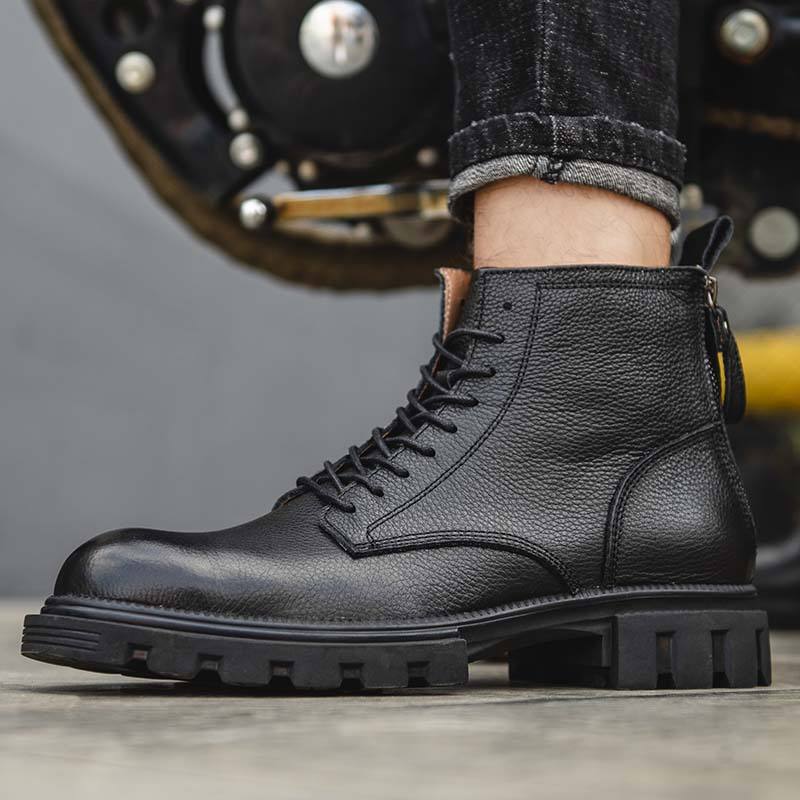 Chaussures décontractées pour hommes en cuir véritable, bout rond, à enfiler, design tendance dégradé, cheville imperméable, semelle extérieure en caoutchouc, hiver