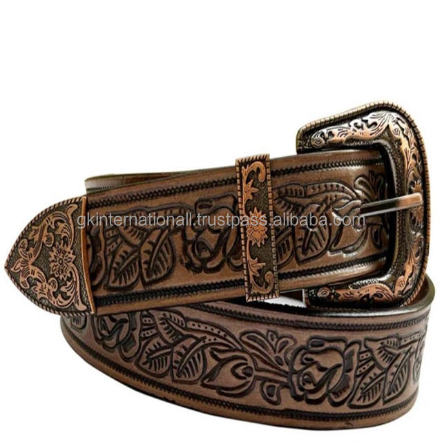 Premium Men's Vintage Western Leather Tooling Belt Hand Carved Sunflower Engraved Hot Sale India Customized Fashion Accessories
