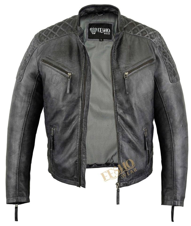 Ash Grey colour Jacket:Washed Leather Jacket