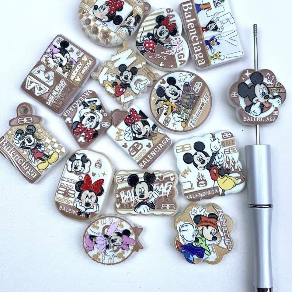 Stylo de perlage DIY Premium Mickey avec décoration de perles imprimées en relief double face, pour chaîne de téléphone portable et accessoire de porte-clés