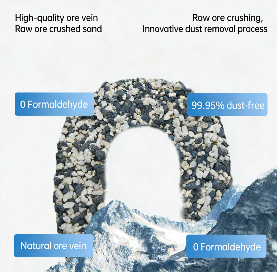 Litière pour chat minérale premium, agglomération rapide, contrôle des odeurs, 99 % sans poussière, hautement absorbante, formes mélangées, sable concassé, hygiène, bleu