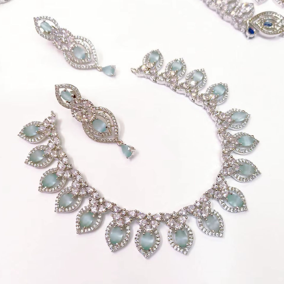 Ensemble de bijoux de mariage en strass vert menthe de qualité supérieure – Collier et boucles d'oreilles plaqués argent de luxe pour les fêtes