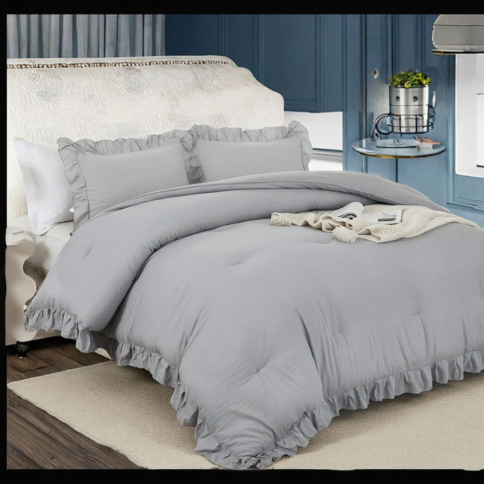 Ensemble de couette en polaire d'hiver moderne de qualité supérieure - Couette matelassée de poids lourd avec volants 500TC 100% polyester
