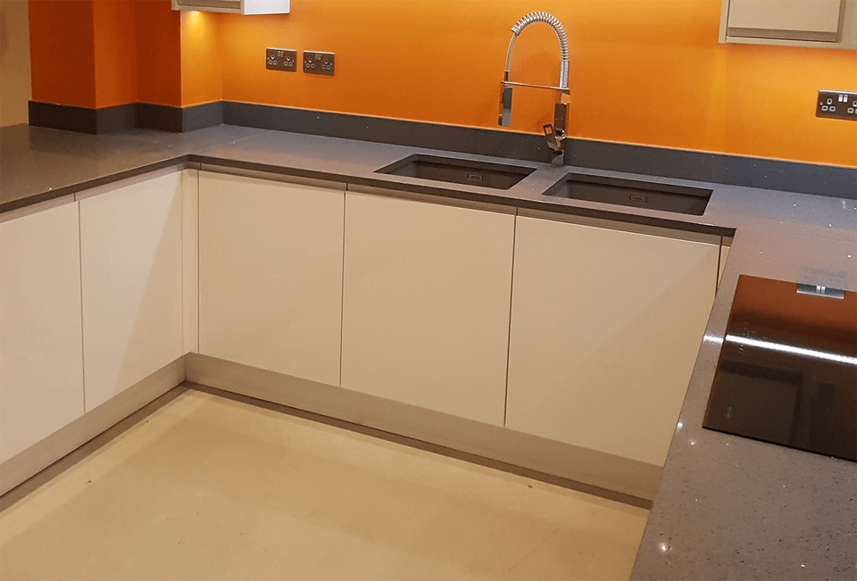 Plan de travail en quartzite noir de conception moderne haut de gamme, épaisseur personnalisée, surface polie, utilisation de luxe