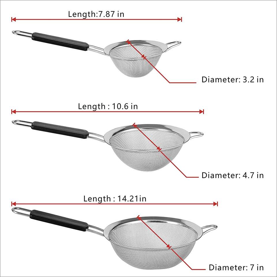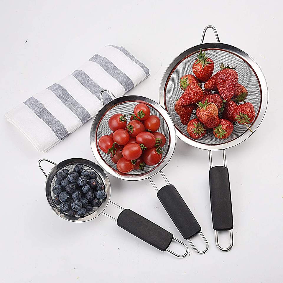 Ensemble de crépines alimentaires à mailles fines modernes de qualité supérieure outil de cuisine en acier inoxydable multi-taille poignées antidérapantes confortables écologiques