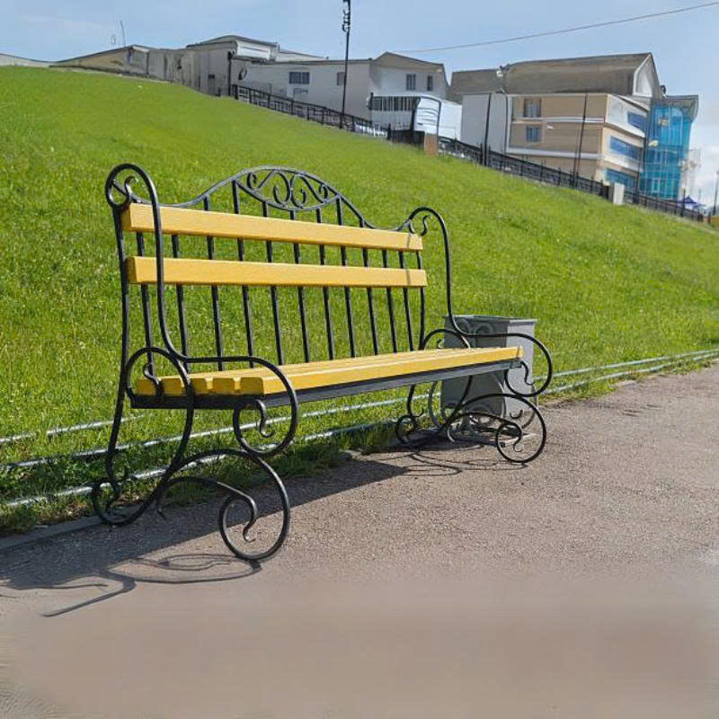 Banc d'extérieur moderne et contemporain en fer de qualité supérieure pour cafés et complexes hôteliers, alliant robustesse extérieure et confort de siège intérieur