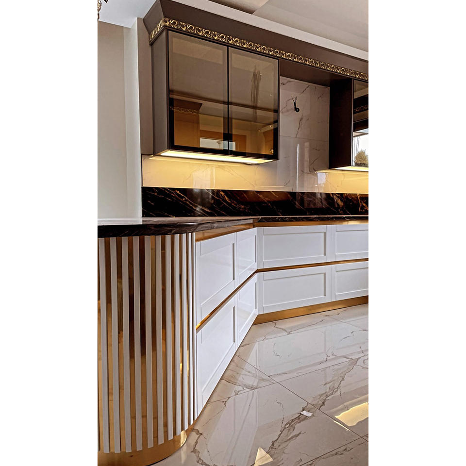 Ensemble de meubles de cuisine modernes haut de gamme, modulaires, en panneaux de particules, avec plan de travail en marbre, installation facile et nettoyage facile pour usage résidentiel