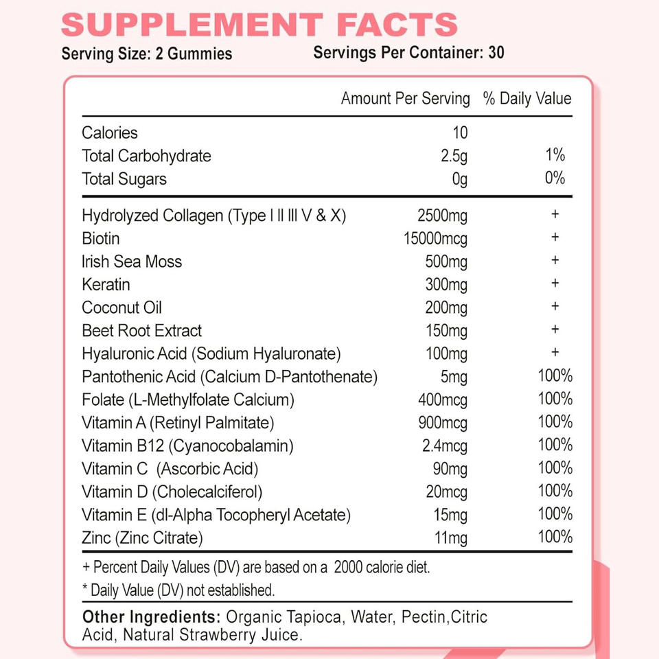 Ingrédient principal:Collagène, Biotine, Mousse de mer