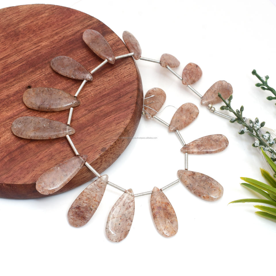 Perles de quartz rutile en cuivre naturel de qualité supérieure, forme poire, lisses, 8 pouces, 7x12,5 10,5x40 mm, faites à la main, par un tiers