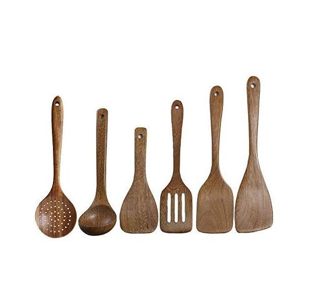 Ensemble de cuillères en bois naturel de qualité supérieure avec spatule de cuisine, louche, spatule à retourner et cuillère à mélanger pour la cuisine