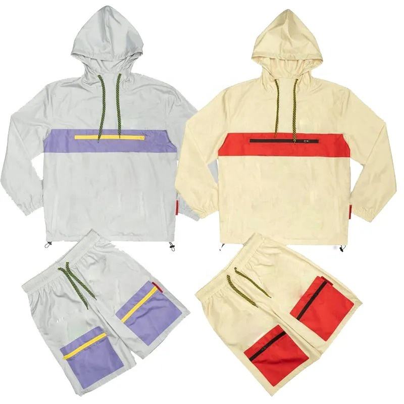Ensemble de survêtement décontracté pour homme de qualité supérieure, 100 % polyester, écologique, séchage rapide, coupe-vent, personnalisé, avec sweat à capuche oversize et short (2 pièces)